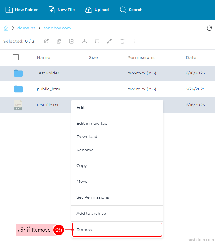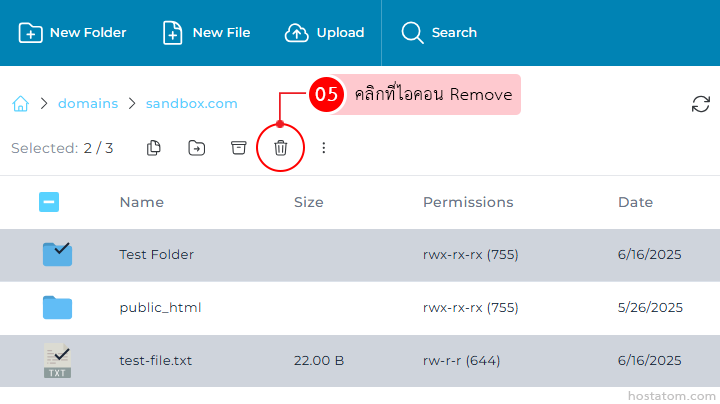 คลิกเลือกไฟล์หรือโฟลเดอร์ที่ต้องการลบ
