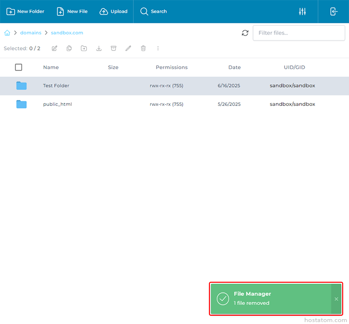ระบบจะแจ้งว่าได้ลบไฟล์หรือโฟลเดอร์ที่เลือกแล้ว