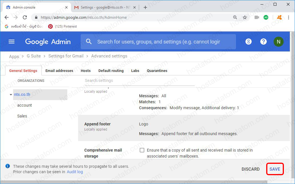 9. จากนั้นจะกลับสู่หน้า Advanced Settings ให้คลิกที่ปุ่ม SAVE อีกที เพื่อยืนยันการตั้งค่า