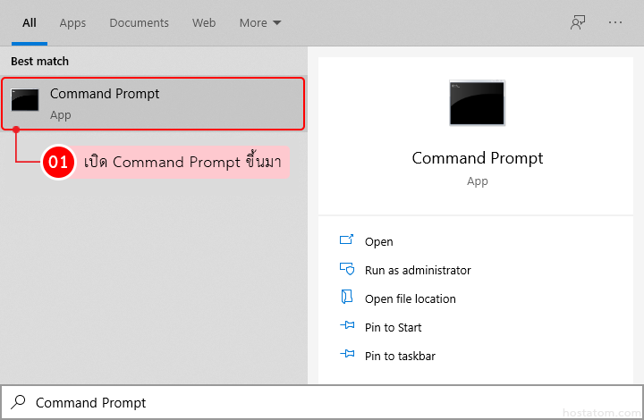 เริ่มจากเปิด Command Prompt ขึ้นมา