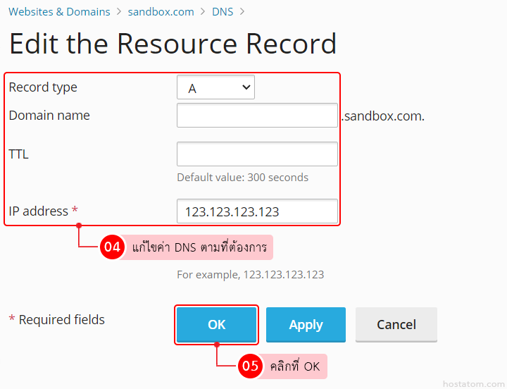 แก้ไขค่า DNS ตามที่ต้องการ จากนั้นคลิกที่ OK