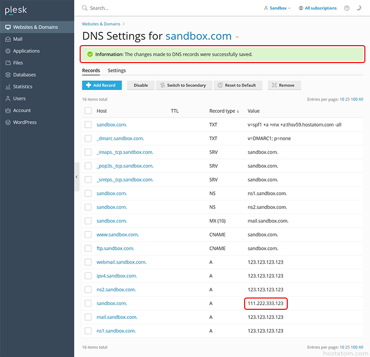 ระบบจะแจ้งว่าได้บันทึกค่า DNS ที่ได้ทำการแก้ไขแล้ว ดังภาพตัวอย่าง