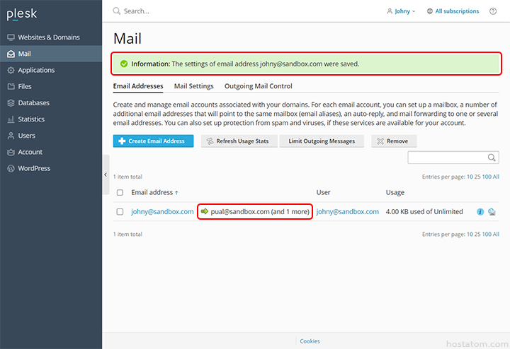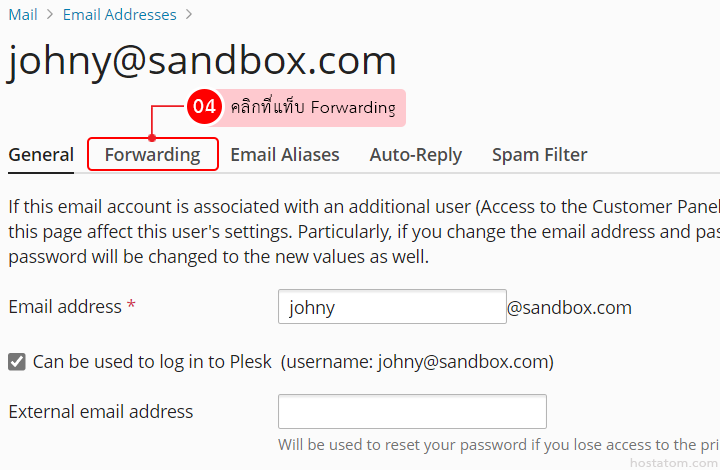 Home Plesk User Level วิธีเปิด/ปิดการใช้งาน forward email ใน Plesk