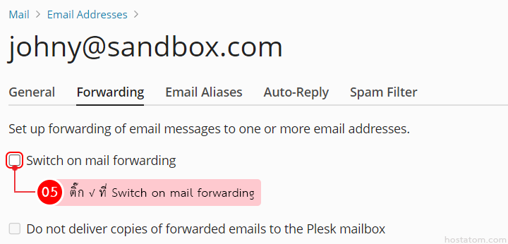วิธีเปิด/ปิดการใช้งาน forward email ใน Plesk