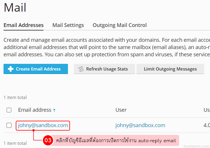 คลิกที่บัญชีอีเมลที่ต้องการเปิดการใช้งาน auto-reply email