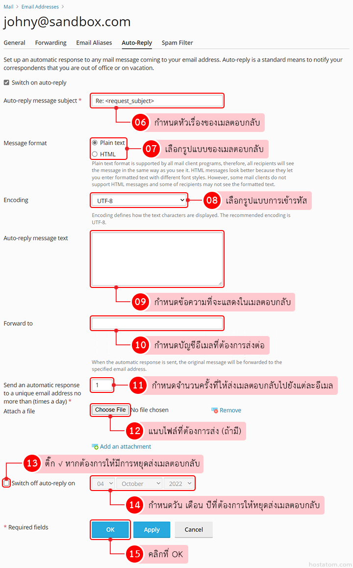 - Auto-reply message subject – กำหนดหัวเรื่องของเมลตอบกลับ