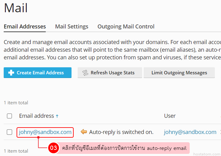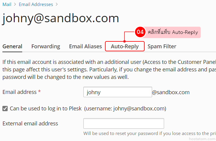 คุณสามารถเปิด/ปิดการใช้งาน auto-reply mail หรือเมลตอบกลับอัตโนมัติ ใน control panel ของ Plesk ได้ตามขั้นตอนต่อไปนี้