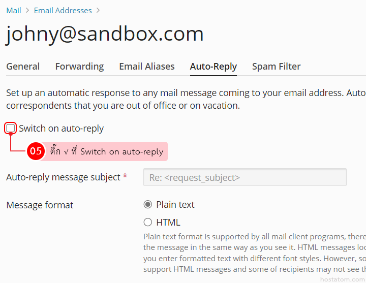 - Message format – เลือกรูปแบบของเมลตอบกลับ