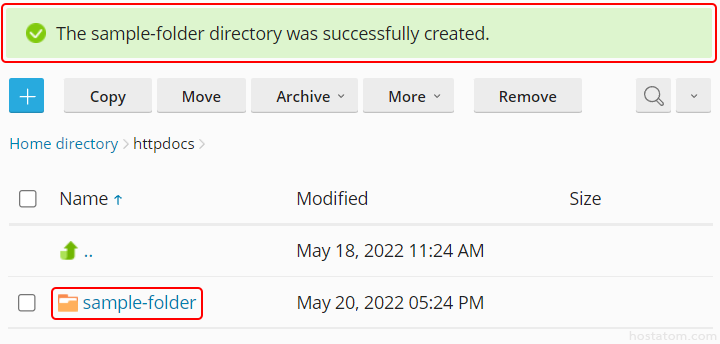 ระบบจะแจ้งว่าสร้างโฟลเดอร์ดังกล่าวเรียบร้อยแล้วดังรูปตัวอย่าง