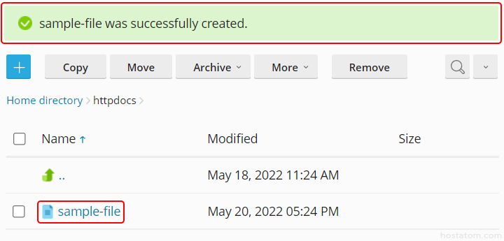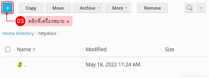ใน Control Panel ของ Plesk นั้น จะมี File Manager ไว้สำหรับจัดการไฟล์ผ่านเว็บเบราว์เซอร์ที่อนุญาตให้คุณสามารถสร้างไฟล์และโฟลเดอร์ขึ้นไปบน server ได้ง่ายๆ ดังนี้
