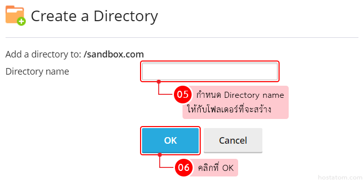 กำหนด Directory name ให้กับโฟลเดอร์ที่จะสร้าง จากนั้นคลิกที่ OK