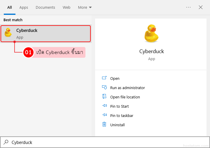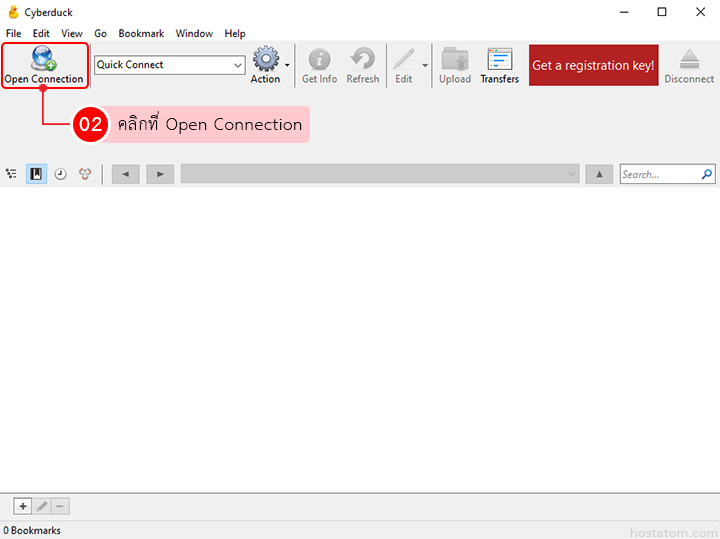 หลังจากดาวน์โหลดและติดตั้งโปรแกรมเรียบร้อยแล้ว ให้เปิดโปรแกรม Cyberduck ขึ้นมา