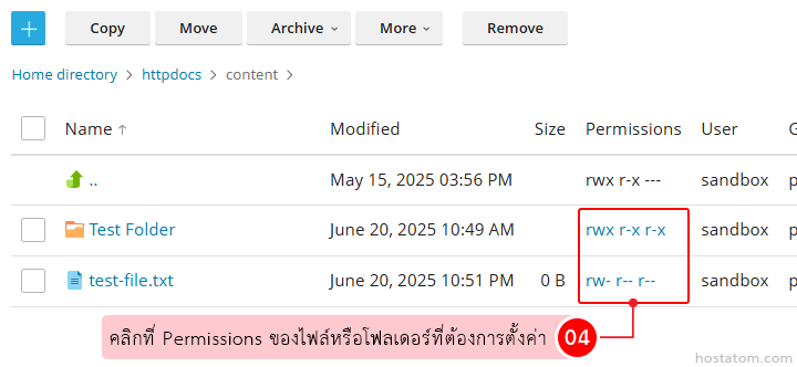คลิกที่ Permissions ของไฟล์หรือโฟลเดอร์ที่ต้องการตั้งค่า