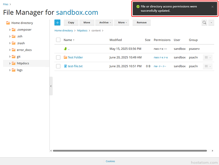 ระบบจะแจ้งว่าได้อัปเดต permission ให้กับไฟล์หรือโฟลเดอร์ดังกล่าวแล้ว