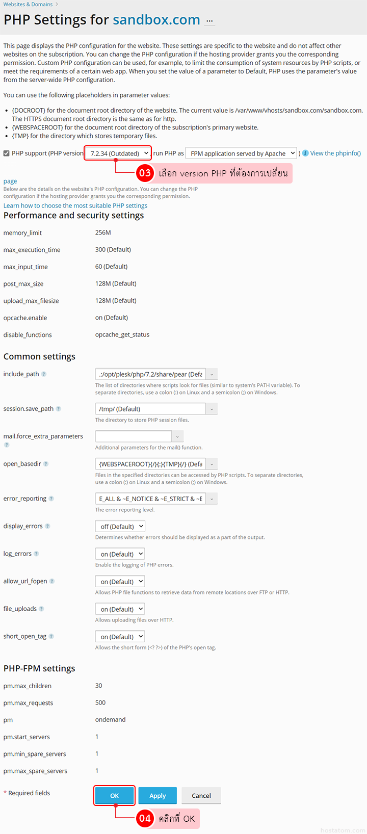 วิธีเปลี่ยน PHP Version ให้กับเว็บไซต์ใน Plesk