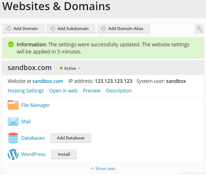 4. ระบบจะแสดงข้อความว่าได้เปลี่ยนแปลงการตั้งค่าเรียบร้อยแล้ว (ใช้เวลา 5 นาที PHP version ถึงจะเปลี่ยน)