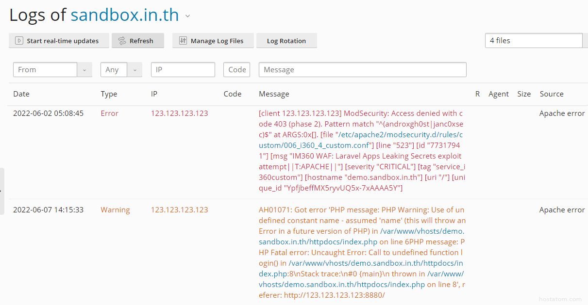 หากคุณพบว่า Website หรือ Web Application ของคุณแสดงผลผิดปกติ ทำงานไม่สมบูรณ์ หรือพบ error code 5xx คุณสามารถเข้าตรวจสอบ Error Log ได้โดยมีขั้นตอน ดังนี้