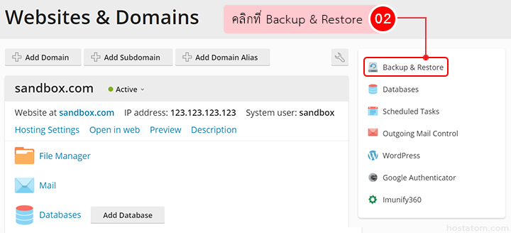2. คลิกที่เมนู Backup & Restore