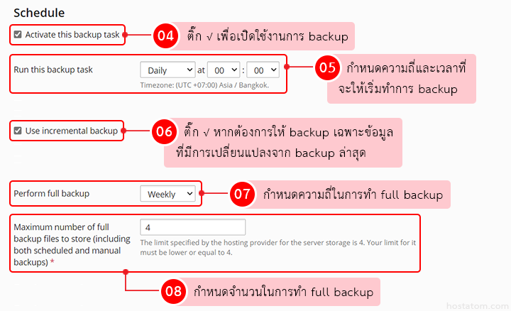• Activate this backup task: หากต้องการเปิดใช้งานการ backup นี้ ให้ติ๊กถูกหน้าข้อความ