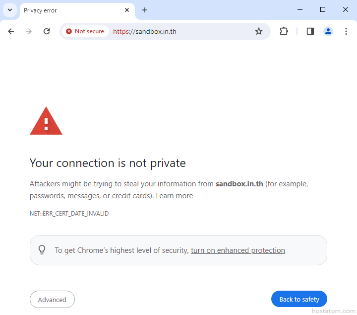 ตัวอย่างเมื่อเข้าเว็บไซต์ที่ไม่ได้ติดตั้ง SSL Certificate