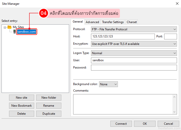 คลิกที่ Site Manager…
