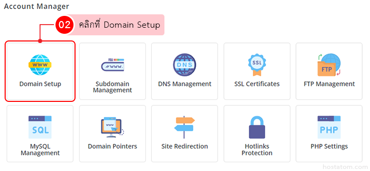 คลิกที่ Domain Setup ในหมวด Account Manager