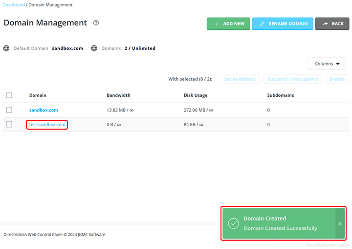 ระบบจะแจ้งว่าโดเมนดังกล่าวได้ถูกสร้างเรียบร้อยแล้ว