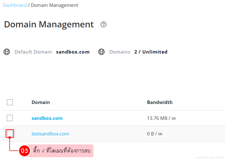 ติ๊กถูกที่โดเมนที่ต้องการลบ