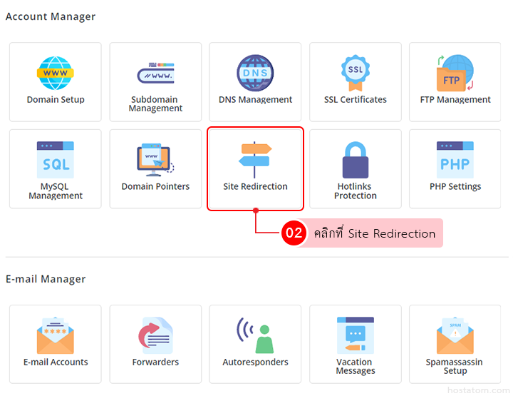 คลิกที่ Site Redirection ในหมวด Account Manager