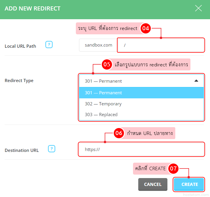 - Local URL Path : ระบุ URL ที่ต้องการ redirect