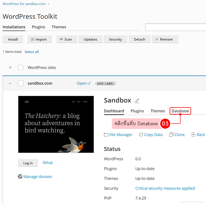 WordPress Toolkit มีตัวเลือกให้จัดการกับฐานข้อมูลเพื่อให้ผู้ดูแลสามารถบริหารจัดการกับฐานข้อมูลของเว็บไซต์เองได้ โดยมีขั้นตอนมีดังนี้