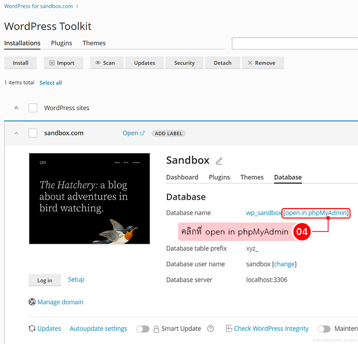 วิธิเปิดดูฐานข้อมูลใน phpMyAdmin ผ่าน WordPress Toolkit