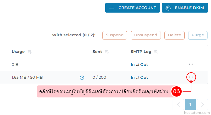 คลิกที่ไอคอนเมนูในบัญชีอีเมลที่ต้องการเปลี่ยนชื่ออีเมล/รหัสผ่าน