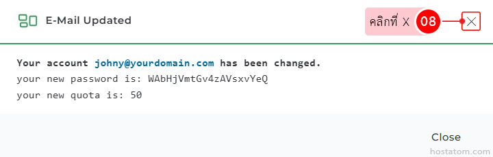 ระบบจะแจ้งว่าได้อัปเดตข้อมูลของบัญชีอีเมลดังกล่าวแล้ว ให้คลิกที่ X