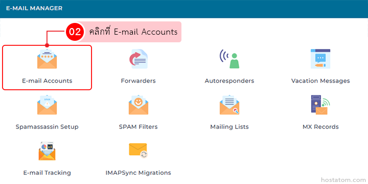 คลิกที่เมนู E-mail Accounts ในหมวด E-mail Manager