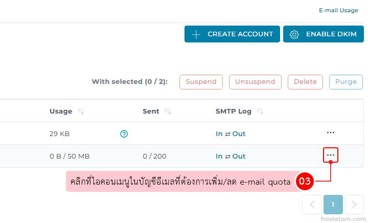 คลิกที่ไอคอนเมนูในบัญชีอีเมลที่ต้องการเพิ่ม/ลด e-mail quota