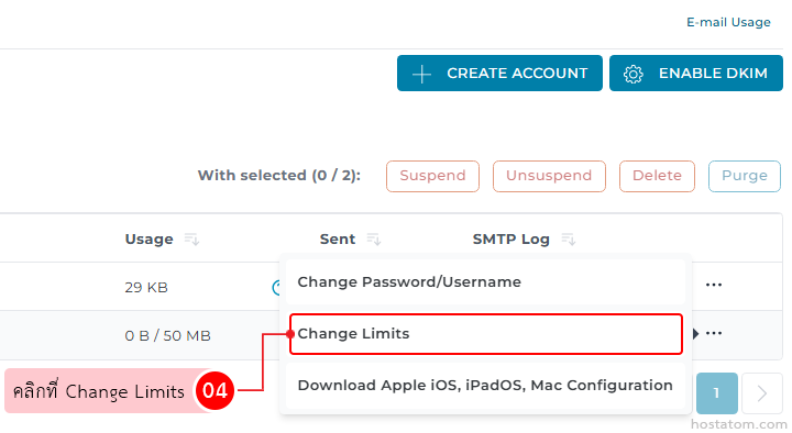 วิธีเพิ่ม/ลด e-mail quota ใน DirectAdmin