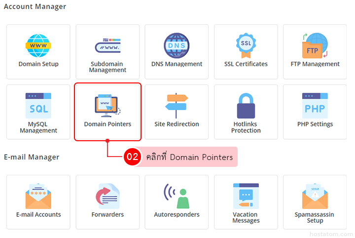 คลิกที่ Domain Pointers ในหมวด Account Manager