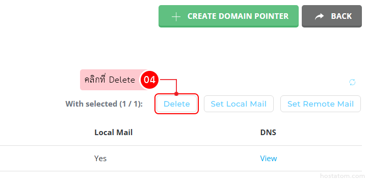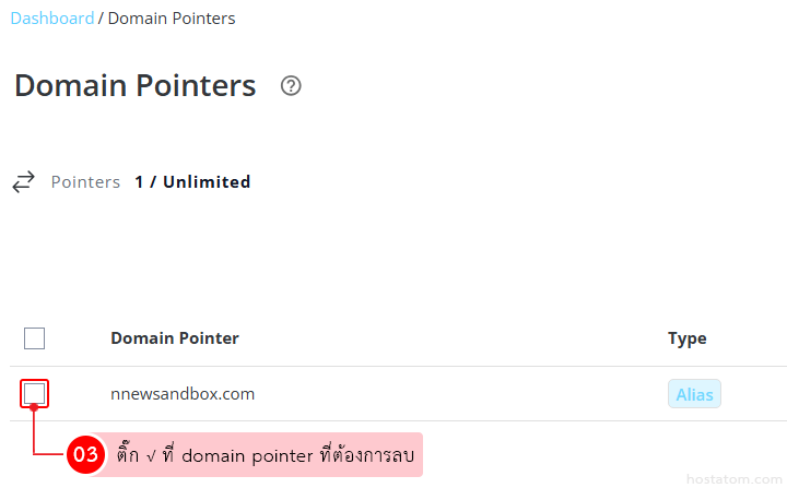 ติ๊กถูกที่ domain pointer ที่ต้องการลบ
