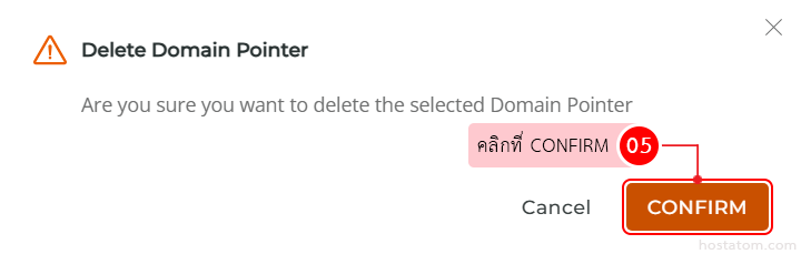 ระบบจะแสดงหน้าต่างยืนยันการลบ domain pointer ขึ้นมา ให้คลิกที่ Delete