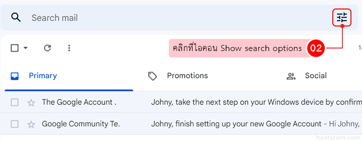 คลิกที่ไอคอน Show search options ในช่องค้นหา