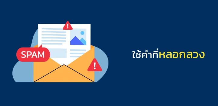 มีการใช้คำ หรือประโยคที่หลอกลวง ซึ่งทางผู้ให้บริการอีเมลจะมีตัวกรองสแปมและหากมีอีเมลที่ประกอบด้วยคำ หรือข้อความที่หลอกลวง อีเมลของคุณจะถูกตั้งสถานะให้เป็นสแปมทันที