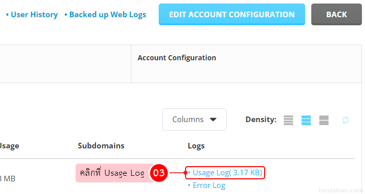 Usage log นั้นจะเป็น raw data ที่เอาไว้ดู IP วันเวลาที่เข้าชมเว็บไซต์ ตำแหน่ง URL หรือไฟล์ที่ถูกเรียก ซึ่งสามารถนำไปประมวลผลเพื่อศึกษาพฤติกรรมของผู้ชมหรือบอท รวมไปถึงการหาแนวทางการพัฒนาเว็บไซต์ โดยใน DirectAdmin นั้นสามารถดู usage log ของเว็บไซต์ได้ตามขั้นตอนต่อไปนี้