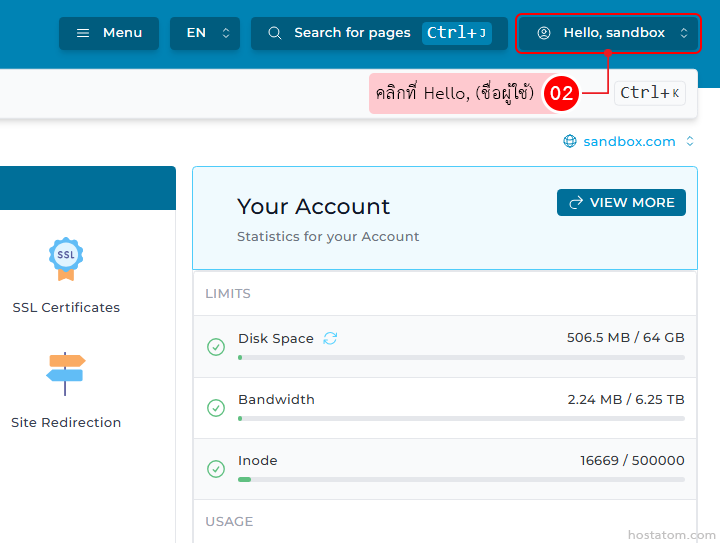 คลิกที่ Hello, (ชื่อผู้ใช้) ที่มุมขวา