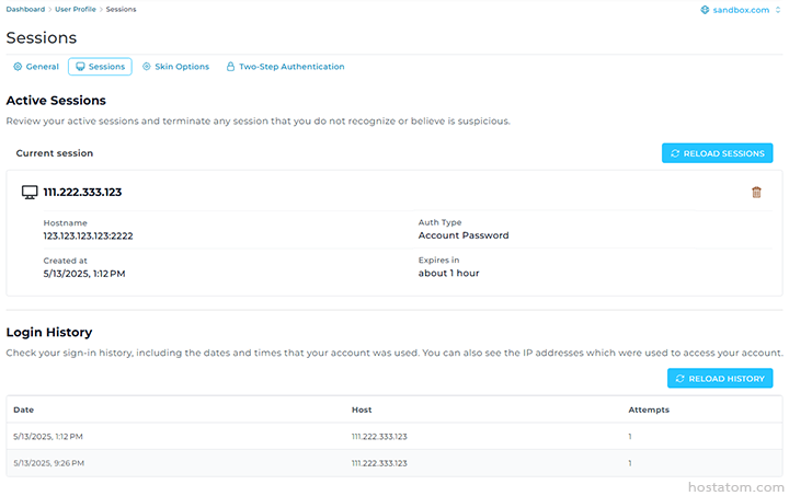 - Active Sessions แสดงการเข้าใช้งานที่กำลังออนไลน์อยู่ในขณะนี้ เช่น IP Address วันที่และเวลาที่เข้าสู่ระบบ