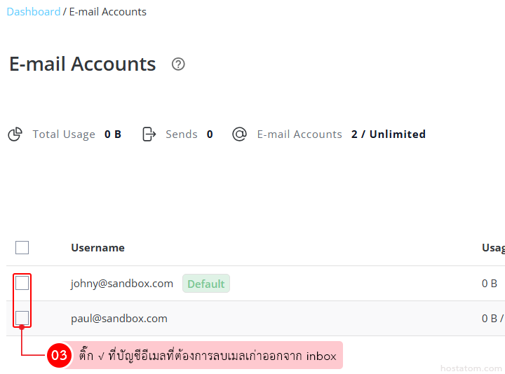 ติ๊กถูกที่บัญชีอีเมลที่ต้องการลบเมลเก่าออกจาก inbox