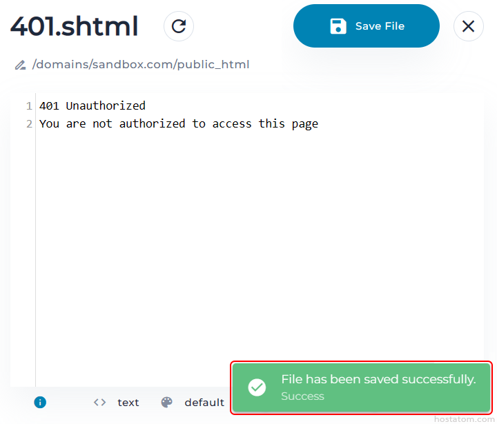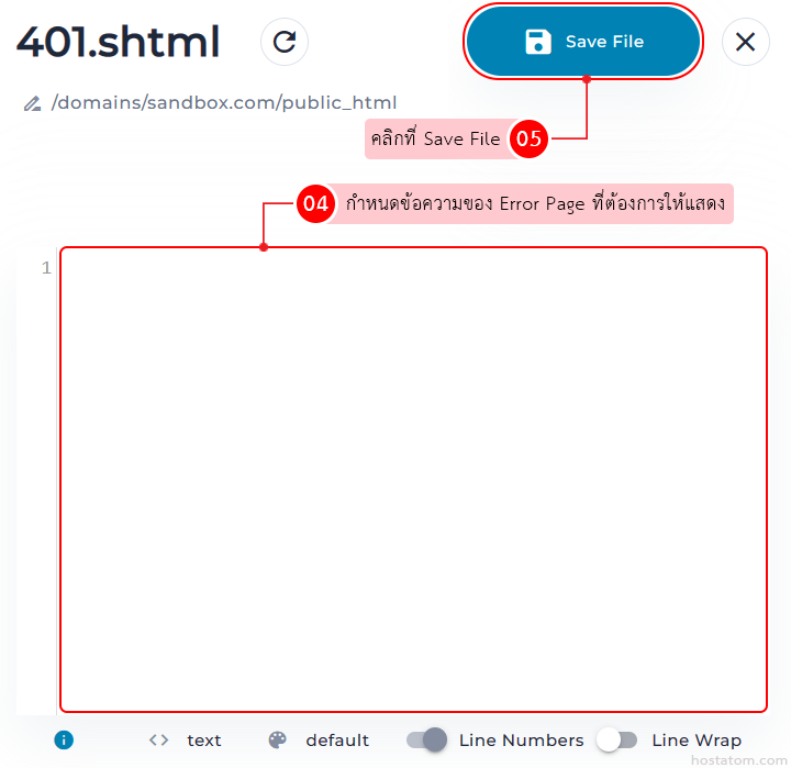 กำหนดข้อความของ Error Page ที่ต้องการให้แสดง จากนั้นคลิกที่ Save File