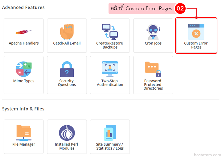 คลิกที่ Custom Error Pages ในหมวด Advanced Features