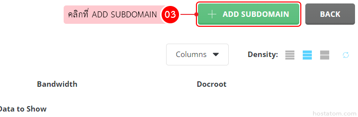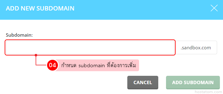 กำหนด subdomain ที่ต้องการ จากนั้นคลิกที่ ADD SUBDOMAIN