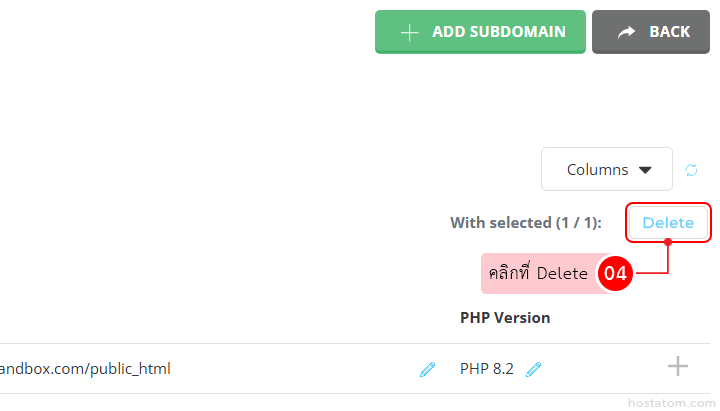 ติ๊กถูกที่ subdomain ที่ต้องการลบ